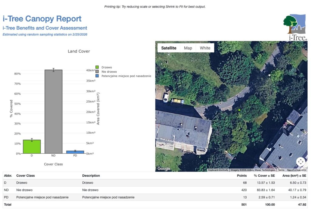 Tradycyjne liczenie drzew „na sztuki” jest czasochołonne i nie oddaje w pełni korzyści, jakie dają nam drzewa. Metoda iTree Canopy, oparta na analizie zdjęć lotniczych i satelitarnych, mierzy pokrycie terenu przez korony drzew (ang. Tree Canopy Cover).