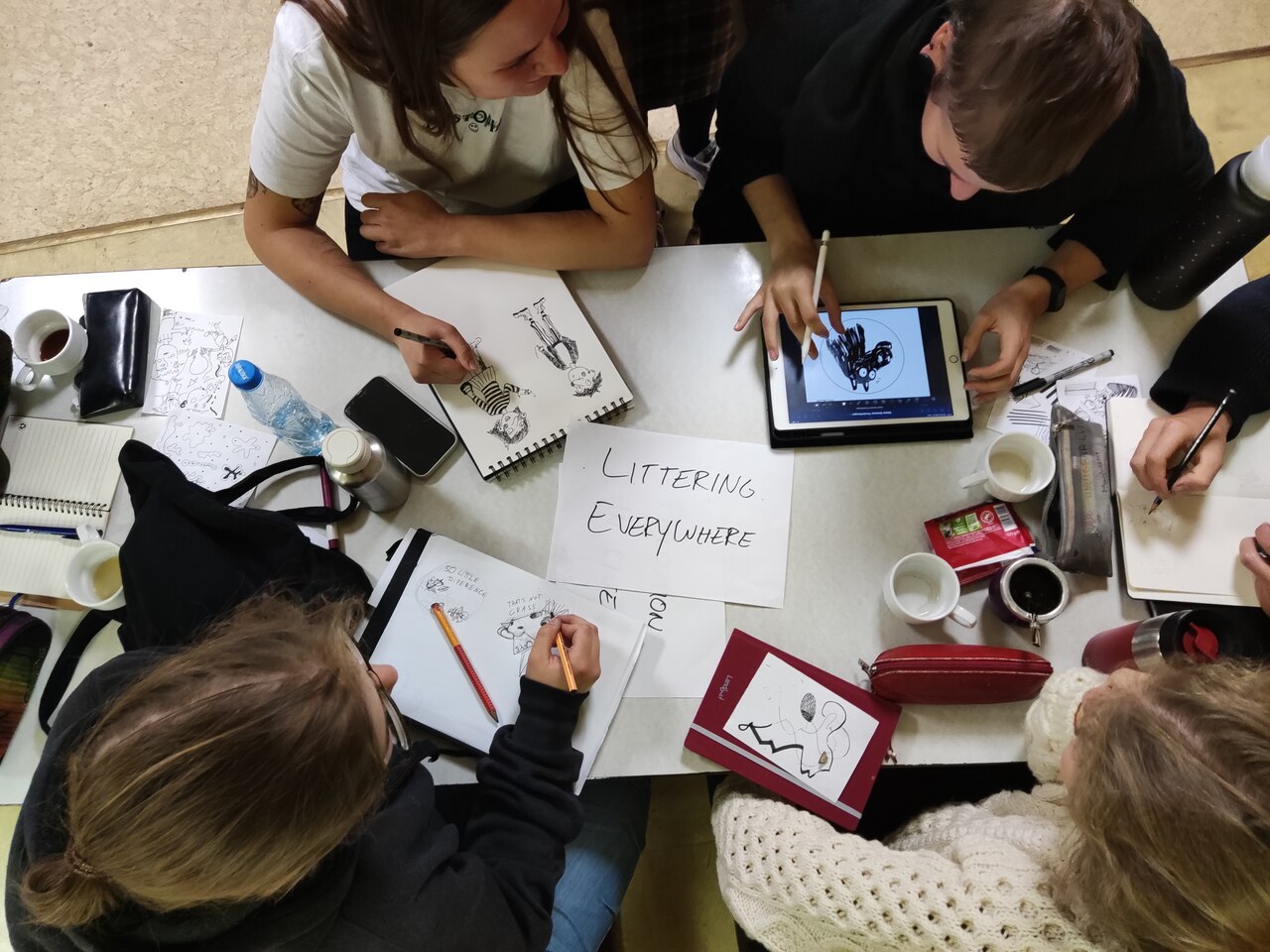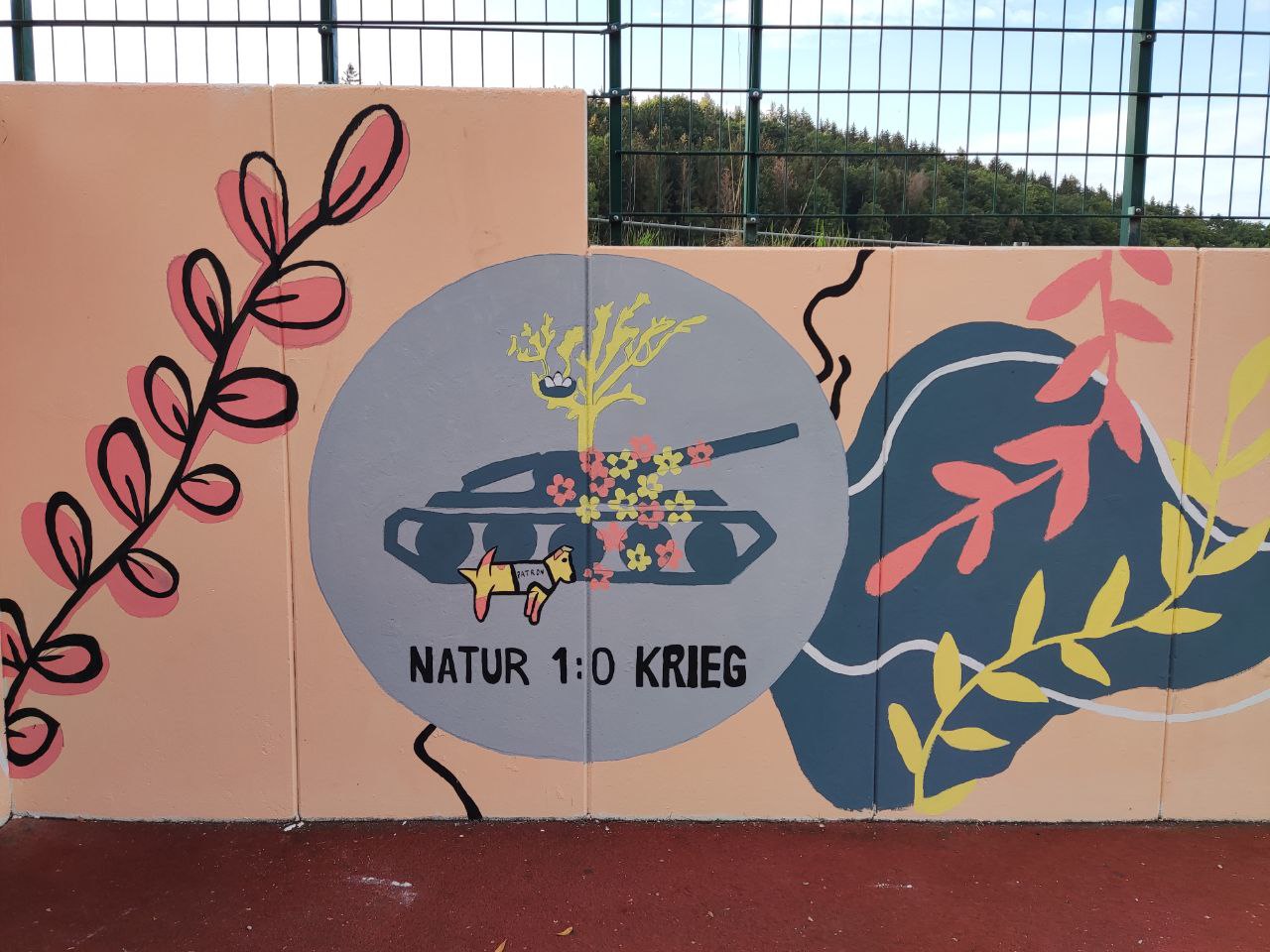 Podczas drugiej części wymiany młodzieżowej w Niemczech skupiliśmy się na kreatywnych formach protestu przeciw katastrofie klimatycznej. Zastanawialiśmy się nad rolą sztuki i działań artystycznych w procesie reagowania na zmiany społeczne i wywierania wpływu na system, nad tym w jaki sposób sztuka może wspierać aktywizm i edukację klimatyczną. Uczestnicy wymiany stworzyli mural poruszający temat „kryzysu klimatycznego”. Końcowy przekaz muralu powstał w sposób kolektywny i zależał od uczestników – od ich pomysłowości i partycypacji.